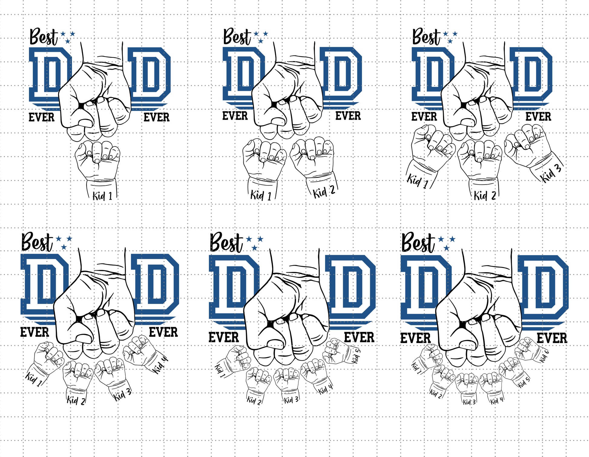 Celebrate fatherhood with our "Best Dad Ever" design featuring a powerful fist bump that prominently displays up to 6 children's names. This personalized tribute creates a meaningful keepsake that honors the special bond between a father and his children. Perfect for Father's Day, birthdays, or any occasion to recognize an exceptional dad.